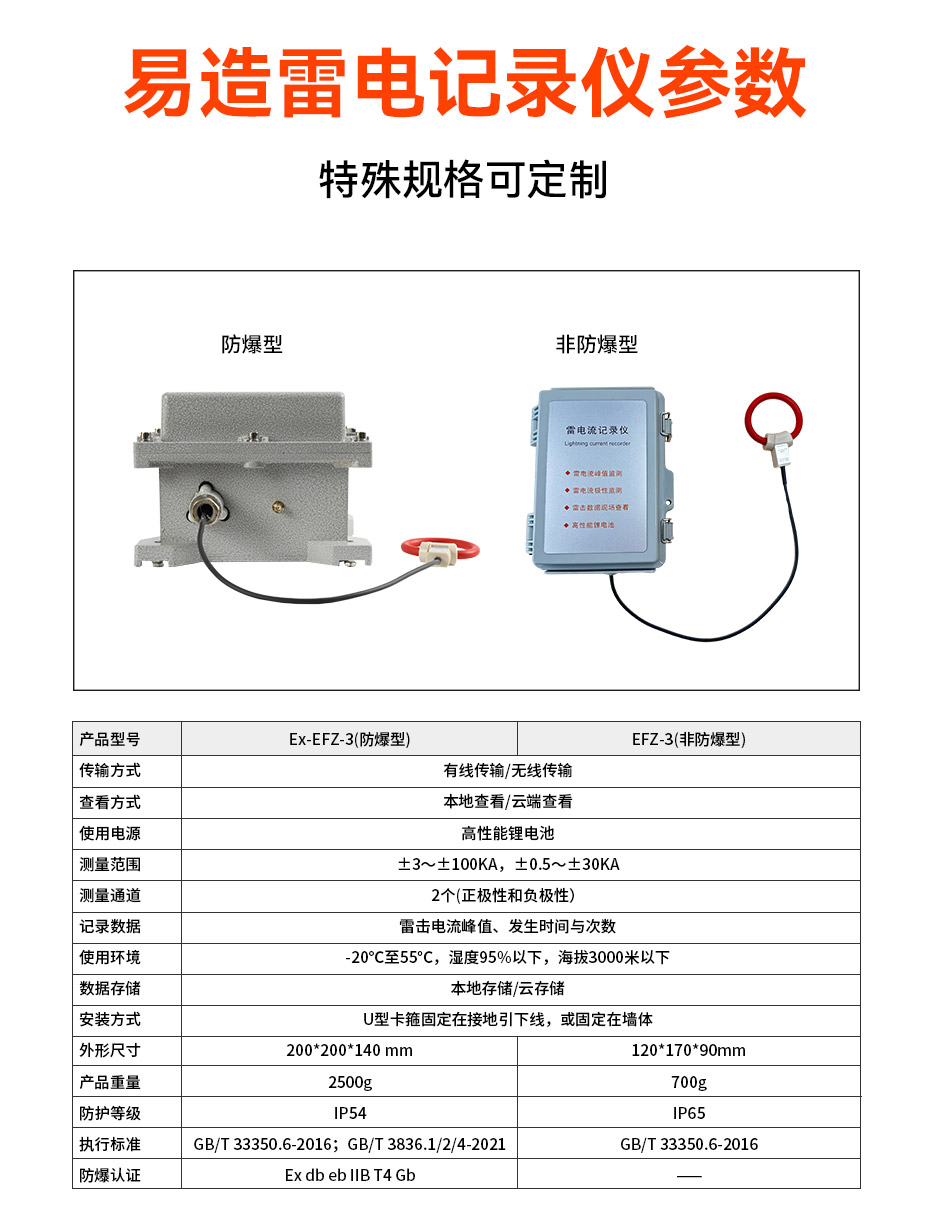 易造EFZ系列雷電流記錄儀具有防爆認(rèn)證,體積小安裝方便、抗干擾能力強(qiáng)、可靠性高;雷電記錄儀通過無線通訊方式與軟件平臺實現(xiàn)聯(lián)動,數(shù)據(jù)自動保存、一鍵查詢;采用高性能鋰電池供電,可連續(xù)使用2-3年,維護(hù)方便。