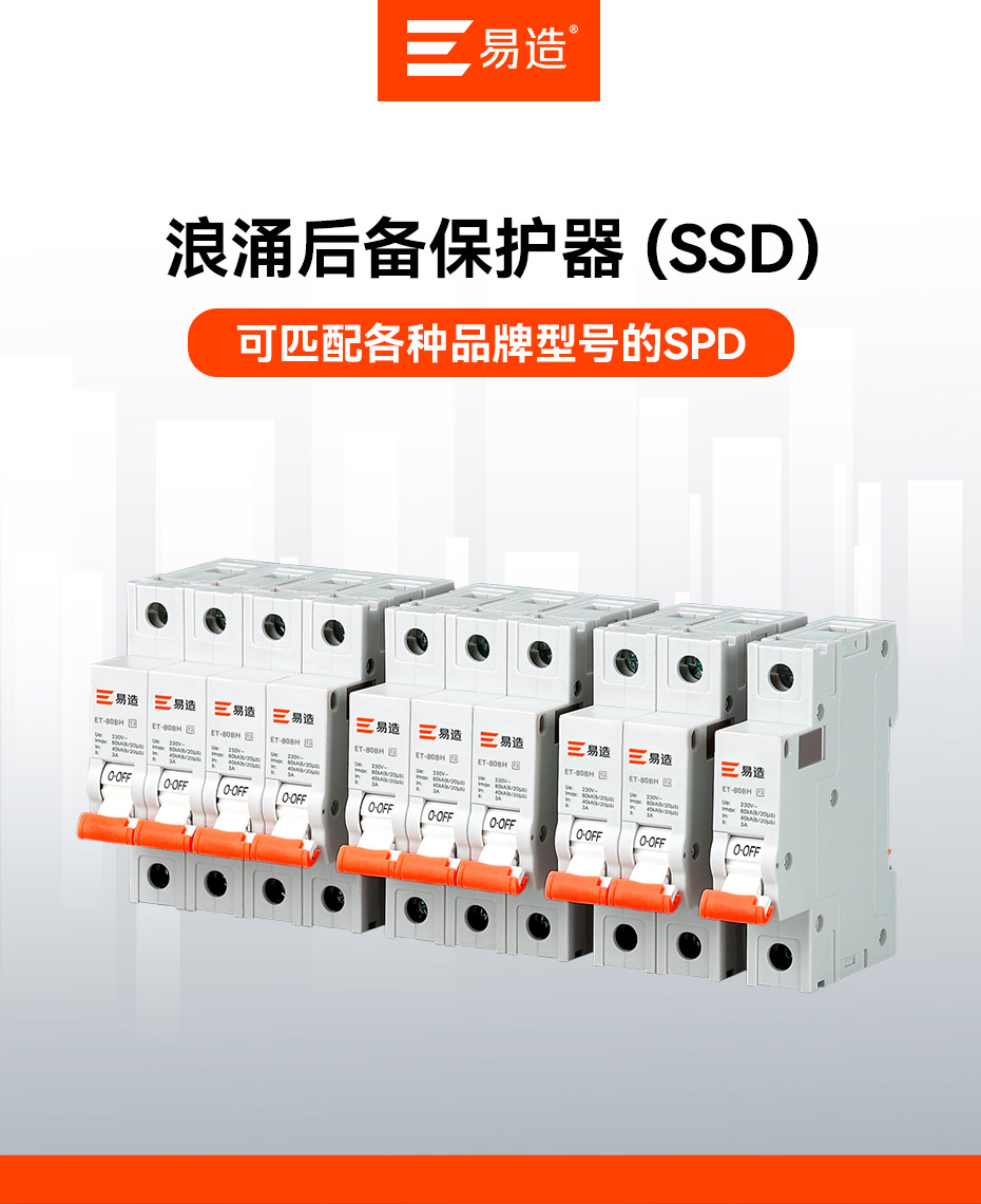 易造浪涌后備保護(hù)器是根據(jù) lEC61643-4-43中 430.3條:"在電路造成危險前,應(yīng)該采用合適的過電流保護(hù)裝置"要求設(shè)計(jì)生產(chǎn)的專用器件.符合NB/T42150-2018《低壓電涌保護(hù)器專用保護(hù)裝置》標(biāo)準(zhǔn),又稱SPD專用后備保護(hù)器、后備保護(hù)器、SCB脫離器或SSD.