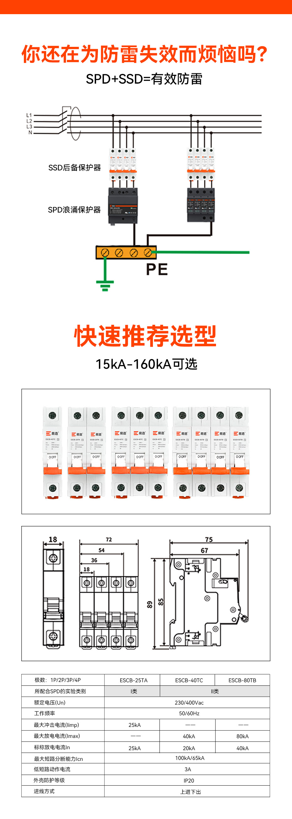 易造后備保護(hù)器可匹配低壓配電系統(tǒng)中任何型號的SPD,具有小體積、高靈敏度且短路分?jǐn)嗄芰?qiáng)等特點(diǎn),為您提供完美的 SPD 后備保護(hù)解決方案。廣泛于電力、新能源、通訊、建筑、交通、石油石化等易燃易爆行業(yè)低壓設(shè)備的防雷保護(hù),大大提高了電氣設(shè)備的可靠性和安全性。