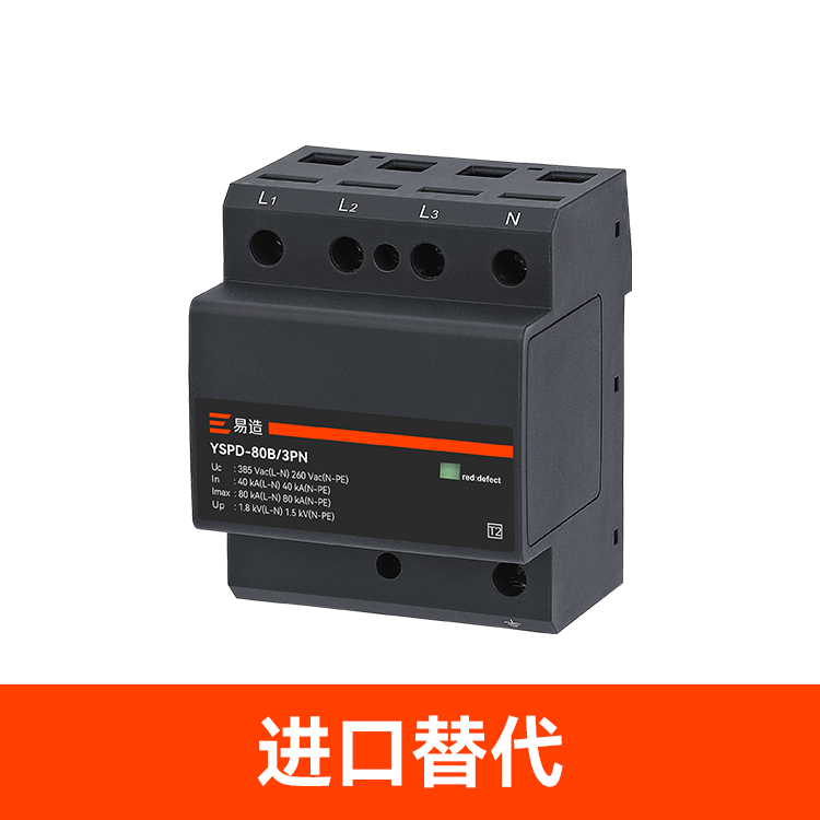 易造二級80kA小體積大通流浪涌保護器,適用于國內外各種供配電系統的單相和三相保護,帶本地和遠程告警功能,安裝簡單、維護方便,可用于2000米以上的高海拔地區。