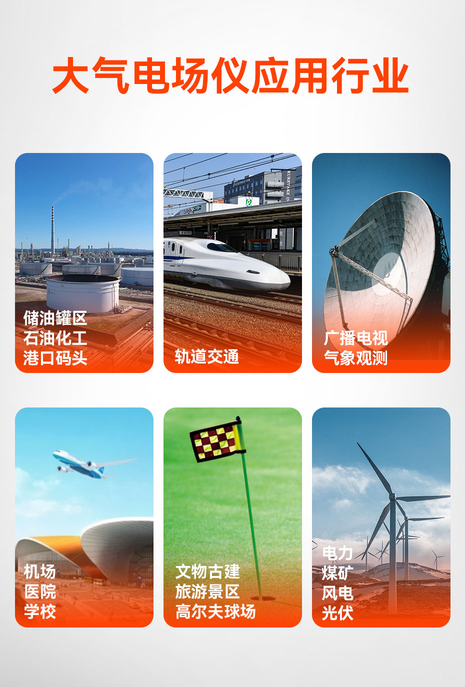 易造場(chǎng)磨式大氣電場(chǎng)儀廣泛應(yīng)用于氣象、電力、石油化工、港口碼頭、軌道交通、機(jī)場(chǎng)、景區(qū)、高爾夫球場(chǎng)等相關(guān)行業(yè),提供防雷暴災(zāi)害事前預(yù)警,保障用戶生命財(cái)產(chǎn)安全。